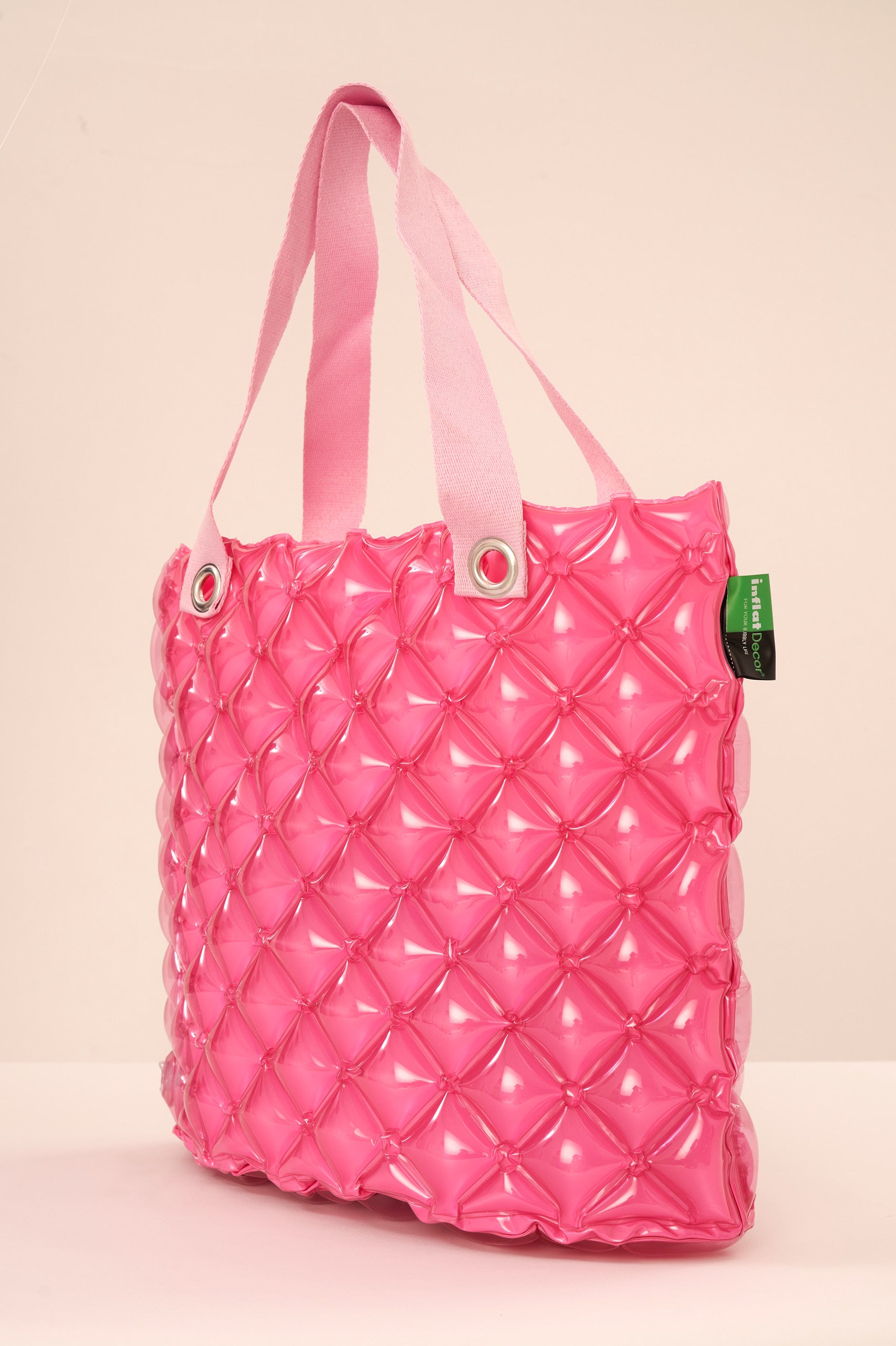 Canlı neon renkleri, kabartma diamond deseni ve şişirilebilir yapısıyla bu çanta, hem plajda hem şehirde tüm dikkatleri üzerine çekmek için tasarlandı.